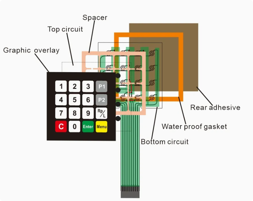 Teclado de chave de membrana, sobreposição gráfica, placa de identificação, sensor de pressão, teclado de silicone e produtos de silicone
